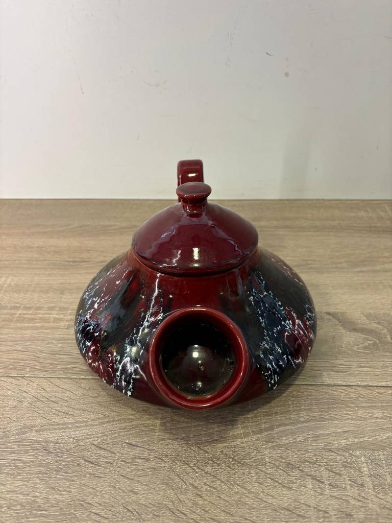 Tetera esmaltada muy bonita y original que ha sido realizada con cerámica de buena calidad. Se trata de una tetera con un diseño de colores que la hacen resaltar. Es ideal para exponerla en un salón comedor o también en un recibidor. Como podemos observar en las fotografías se encuentra en buenas condiciones. Aprovecha esta oportunidad de llevarte un elemento decorativo a un módico precio.