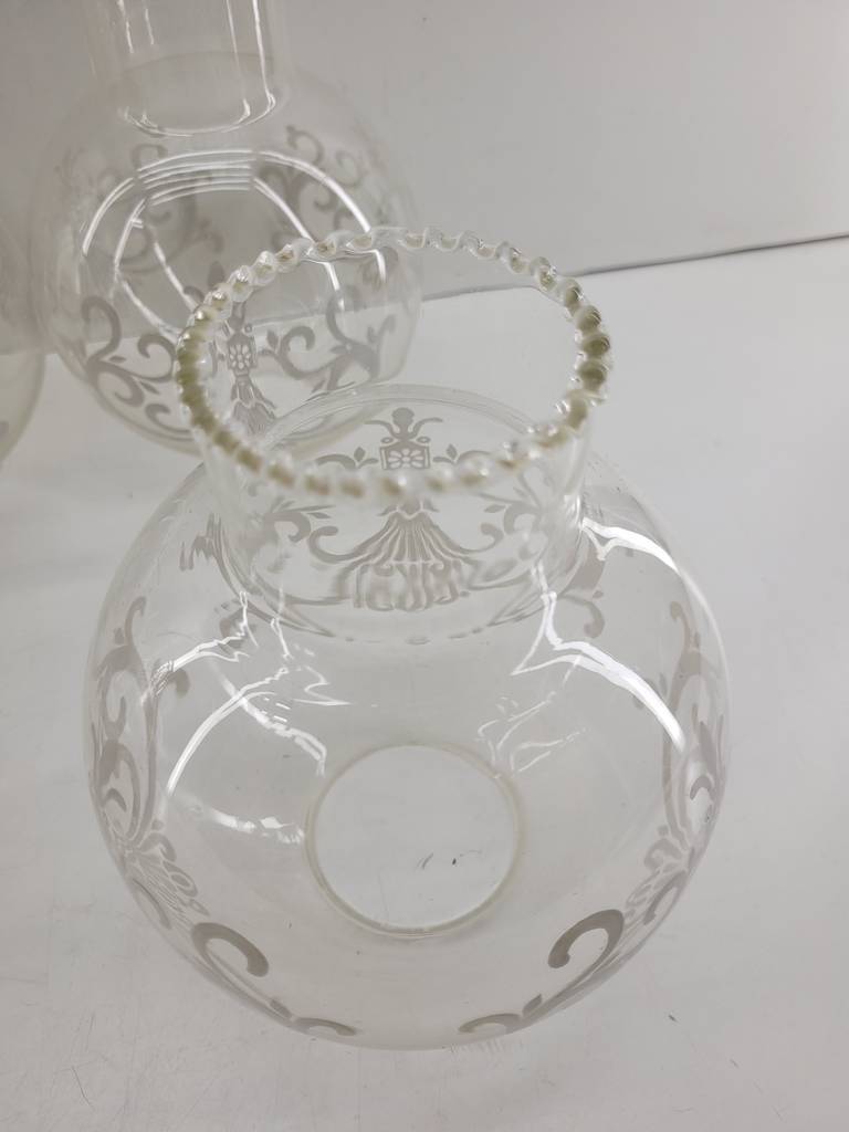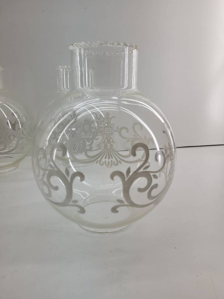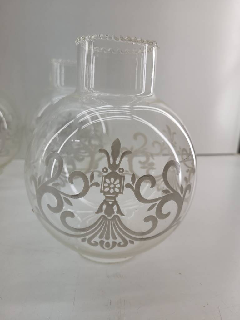 Tulipa muy bonita y original con unos grabados muy elegantes. Se trata de una tulipa que ha sido fabricada en vidrio de cristal transparente. Dispone de un agujero con una medida de 6 cm. Es ideal para sustituir por unas lámpara de mesa o pared en mal estado. Como podemos observar en las fotografías se encuentra en buenas condiciones y lista para ser instalada.