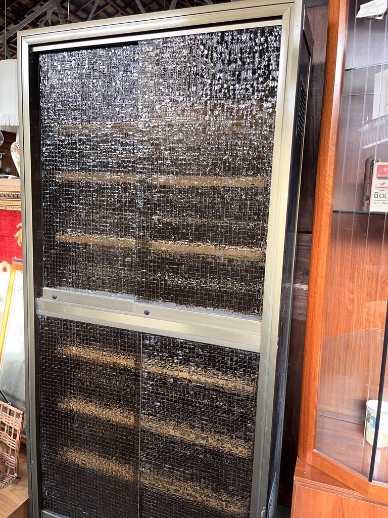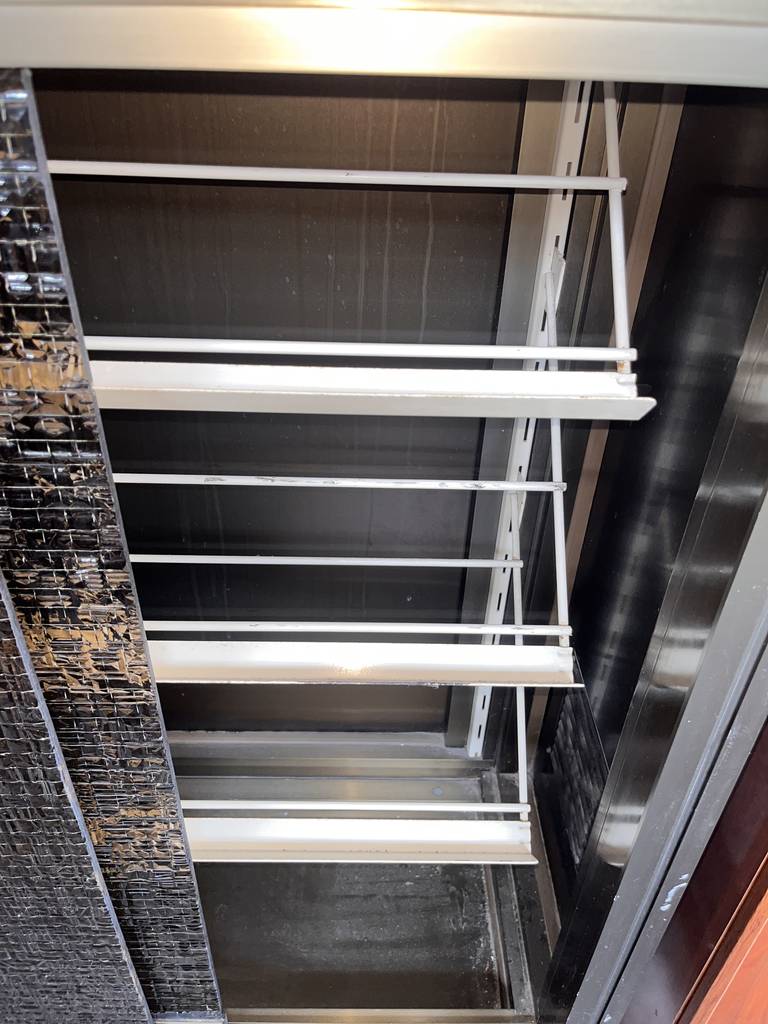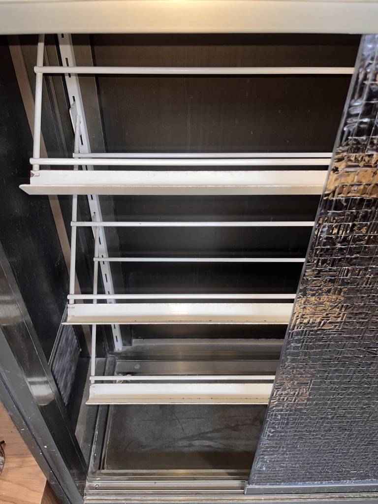 Zapater fabricado en aluminio con puertas cristaleras correderas. Se trata de un zapatero de grandes dimensiones que cuenta con una parte superior y otra inferior en las que hay espacio suficiente para almacenar y guardar varios pares de zapatos Es un zapatero perfecto para ponerlo en un dormitorio. Como se puede observar en las fotografías se encuentra en buen estado.